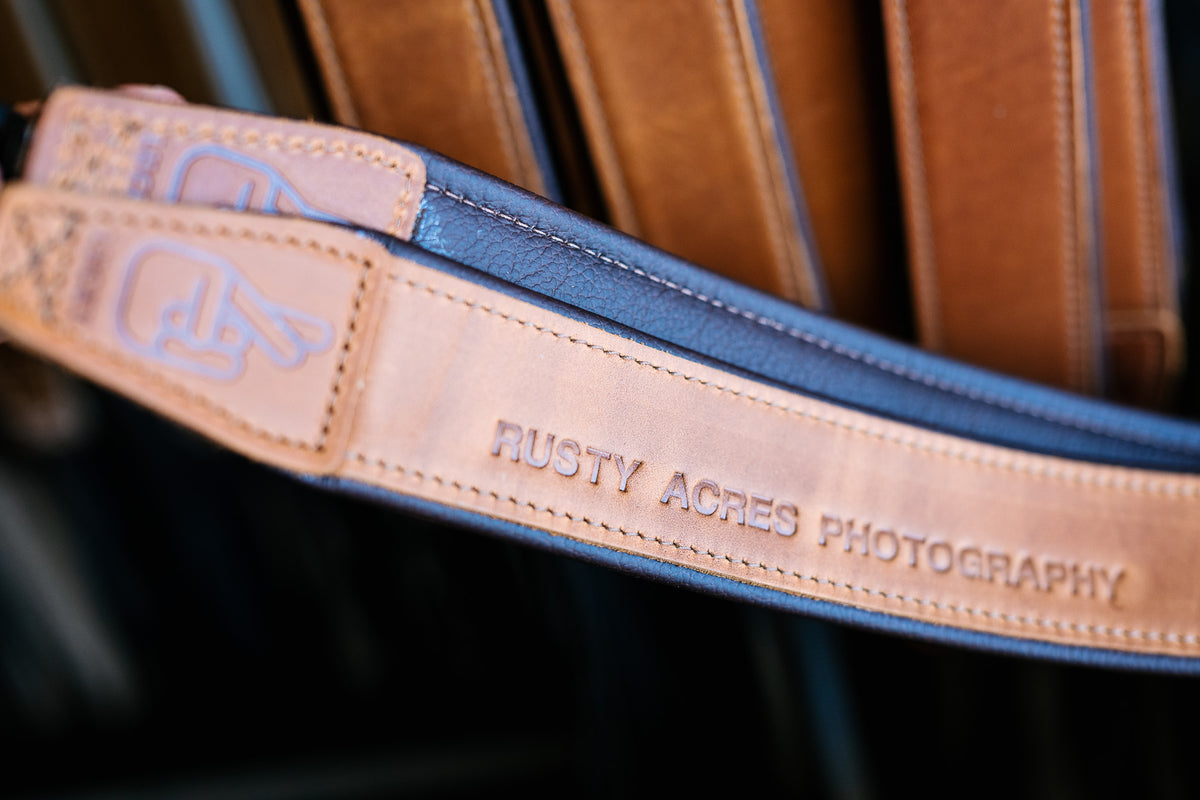 Our Deluxe 45 camera straps can be customised just for you! The personalisation is achieved by hot pressing the letters into the leather resulting in a timeless look and feel.